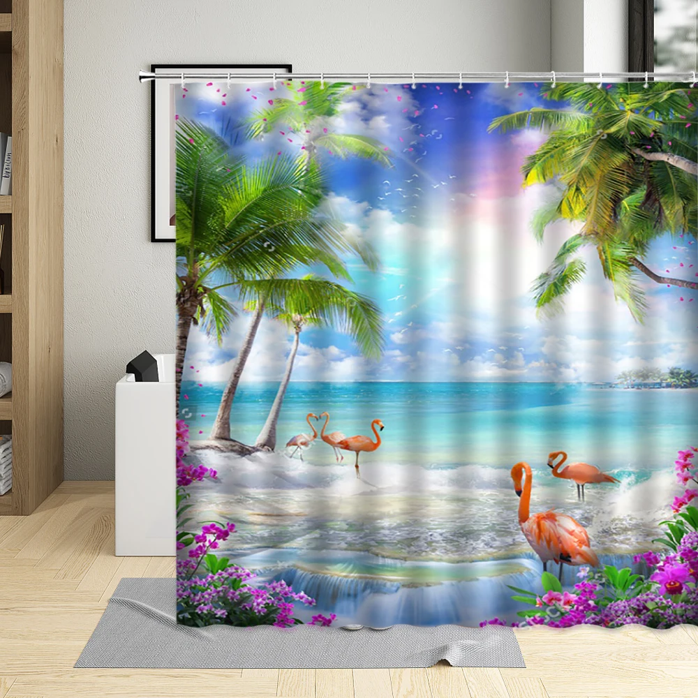 Занавеска для душа с рисунком морского побережья, моря, кокосового ...