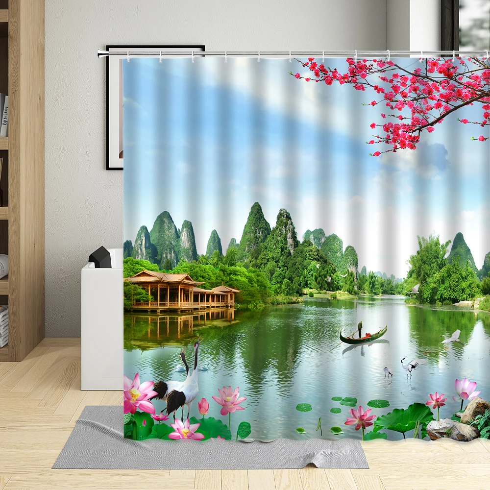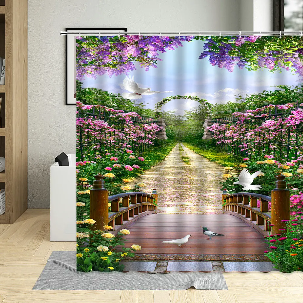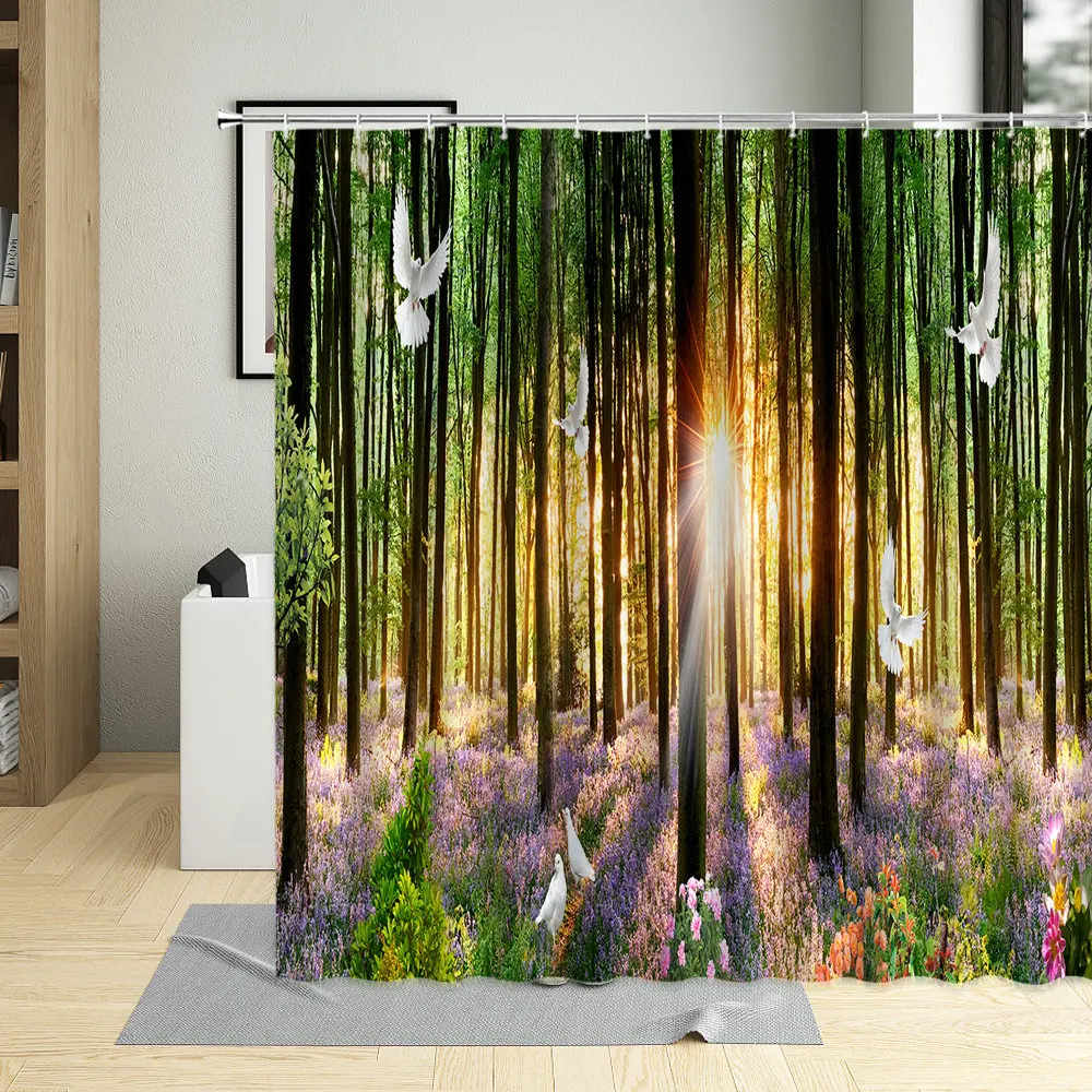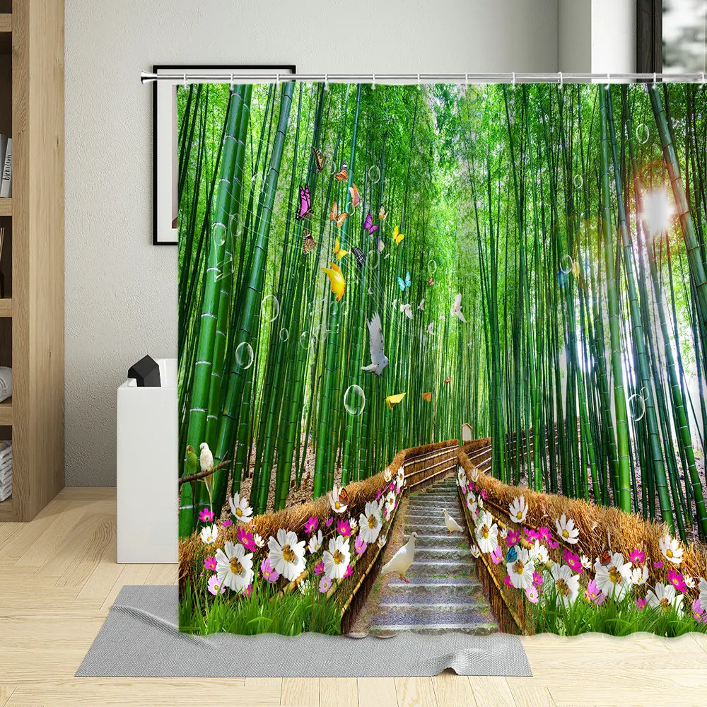 Занавеска для душа, зеленый лес, природа, декор для ванной комнаты,...