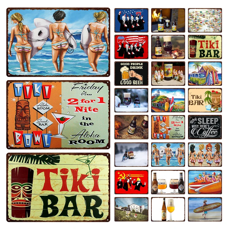 Tiki украшение для бара открытые летние пивные ретро металлические ...