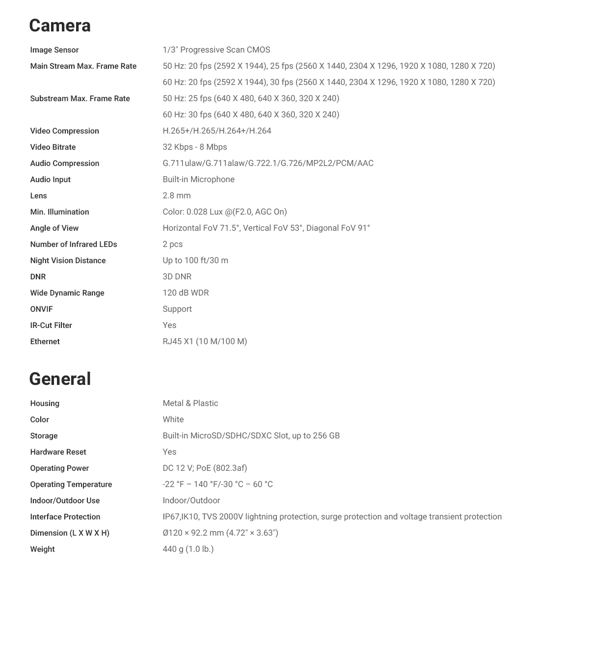 Основной поток Макс. Частота кадров: "50 Гц: 20 кадров в секунду (2592 × 1944), 25 кадров в секунду (2560 × 1440, 2304 × 1296, 1920 × 1080, 1280 × 720)60 Гц: 20 кадров в секунду (2592 × 1944), 30 кадров в секунду (2560 × 1440, 2304 × 1296, 1920 × 1080, 1280 × 720)"