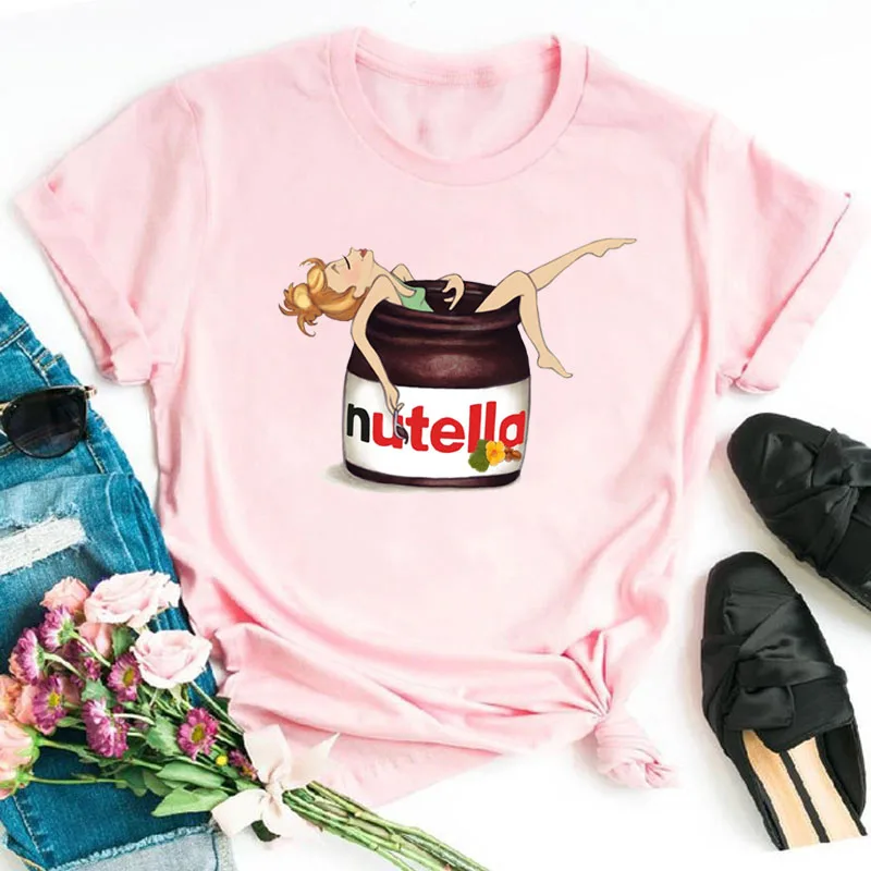 Футболка женская с принтом Nutella, модная Милая мультяшная футболк...