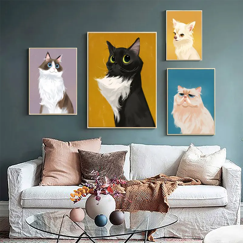 Скандинавские Животные Собаки Кошки картины на холсте Европейский стиль настенные художественные плакаты роскошные украшения картины для гостиной домашний декор