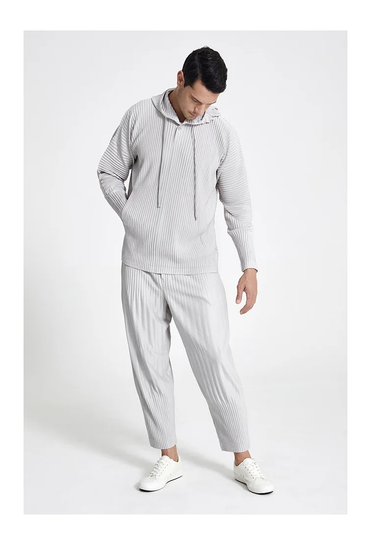 Miyake плиссированные мужская повседневная куртка с капюшоном куртка 2021 летние новые модные свободные и удобные Однотонный свитер, кофта с капюшоном