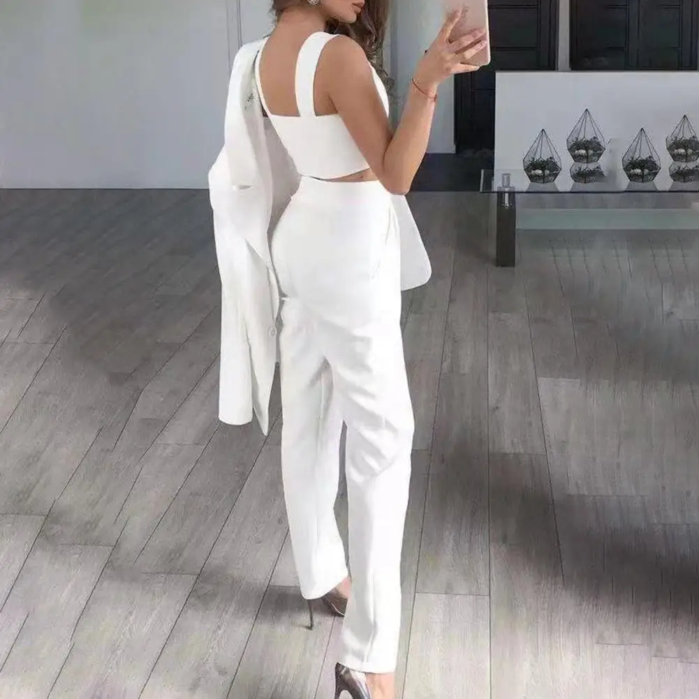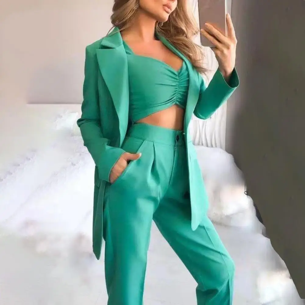 3 шт.компл. женские костюмы, Блейзер, пальто, брюки, топ, летнее пл...