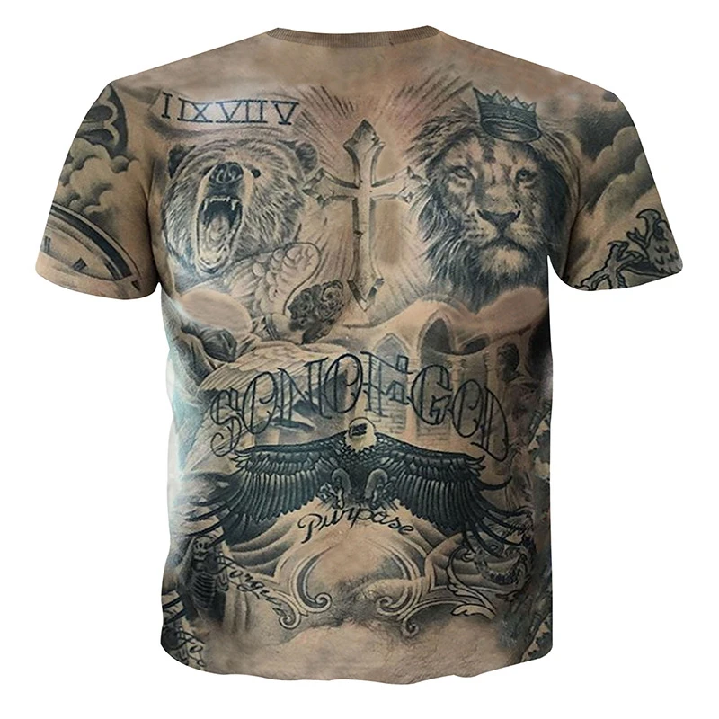 Летние мужские фальшивые мускулы футболки с 3D принтом татуировок с...
