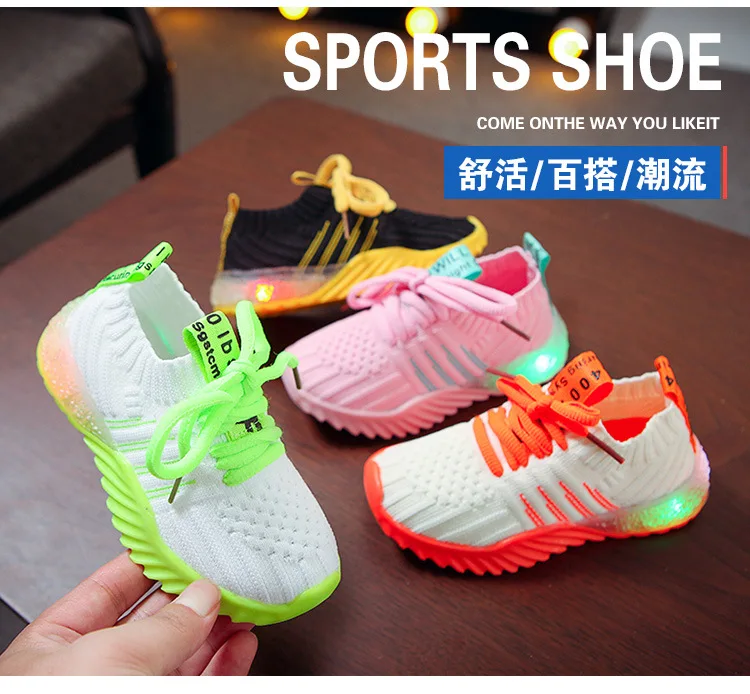 Детская обувь со светодиодной подсветкой, новинка 2021, стильные светящиеся кроссовки для мальчиков и девочек, дышащие легкие кроссовки для мальчиков и девочек, Tn