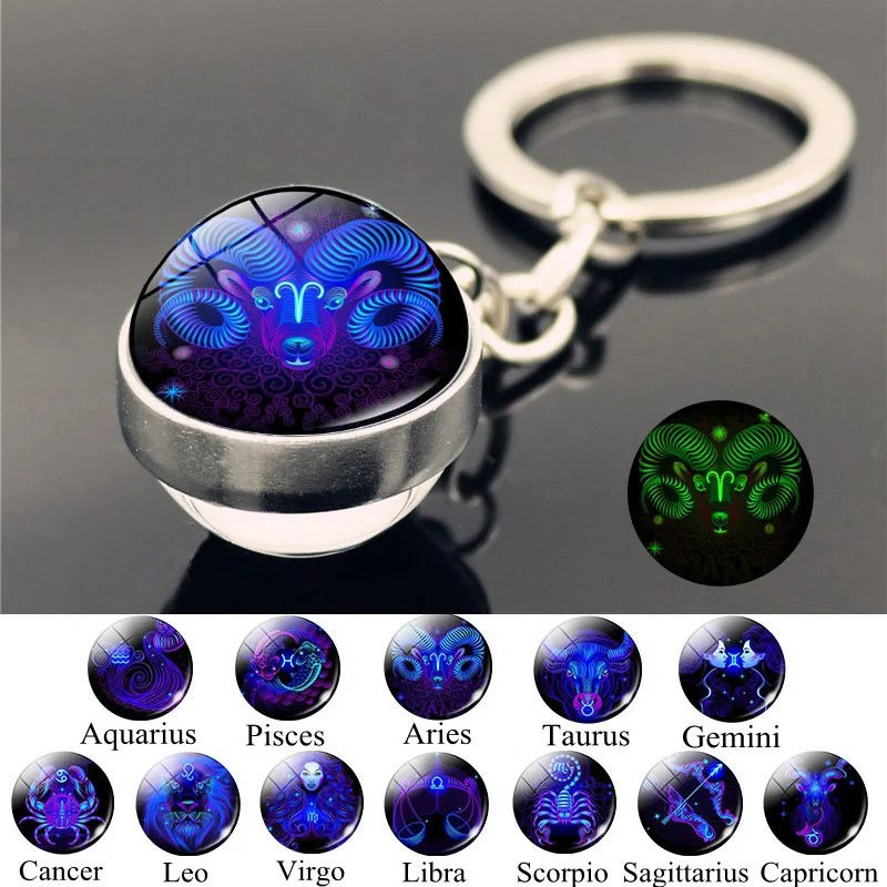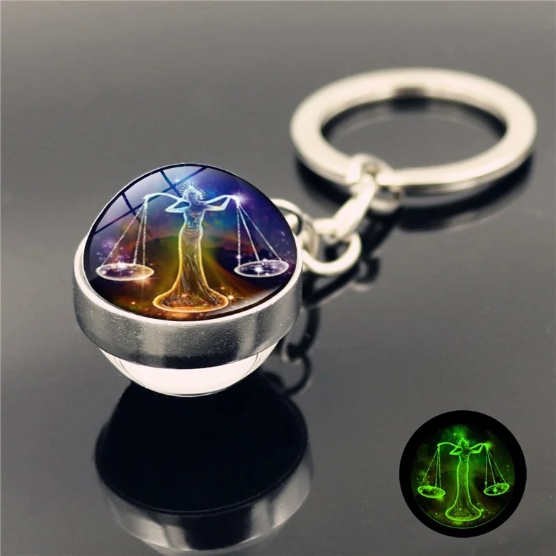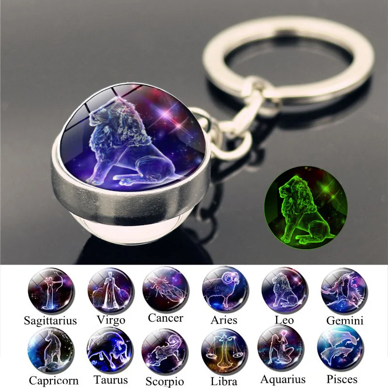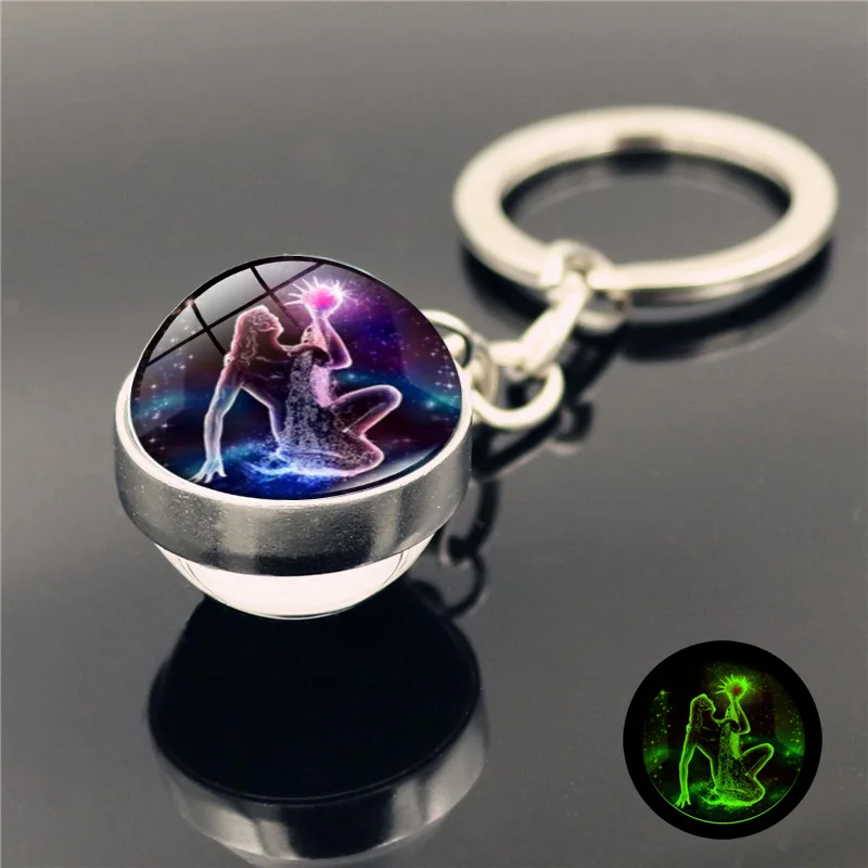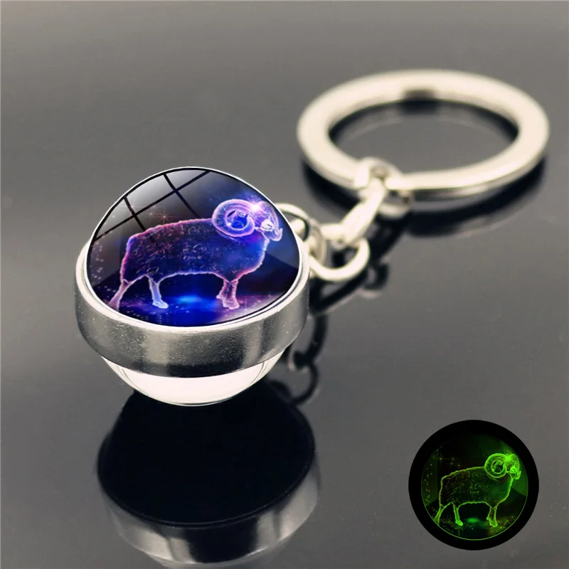 Брелок для ключей со стеклянным шаром, 12 созвездий, светящийся, светится в темноте