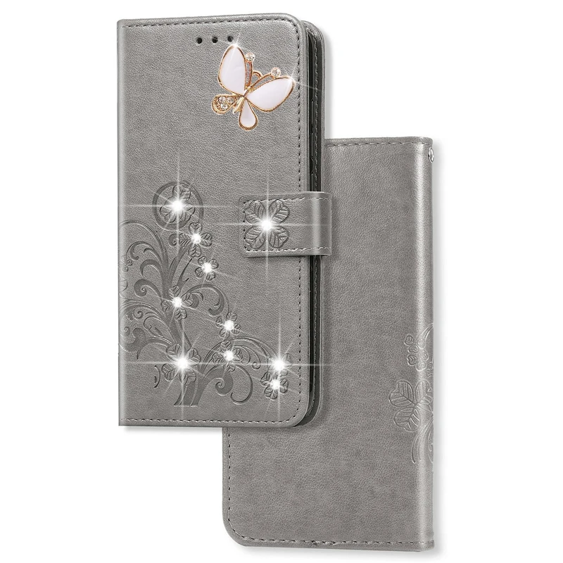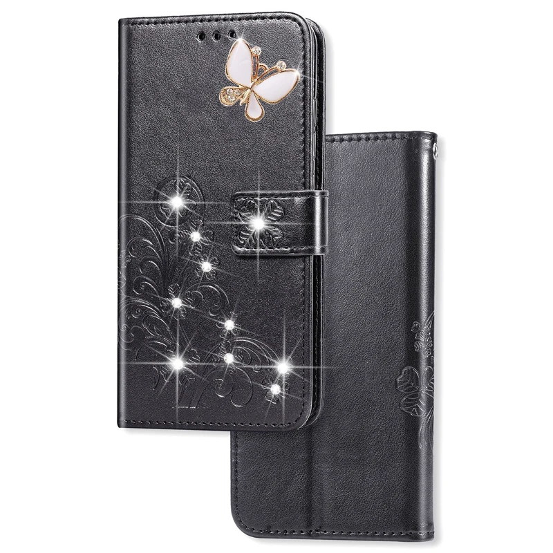 Цветной Чехол-бумажник из искусственной кожи с 3D тиснением в виде бриллиантов и цветов, чехол-бабочка с украшением в виде цветов