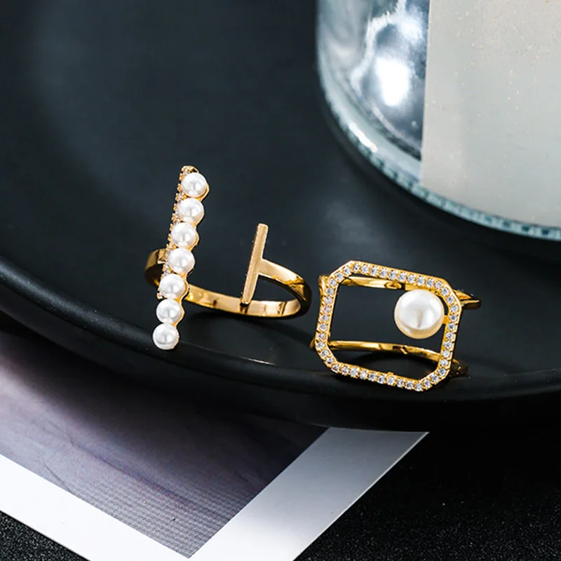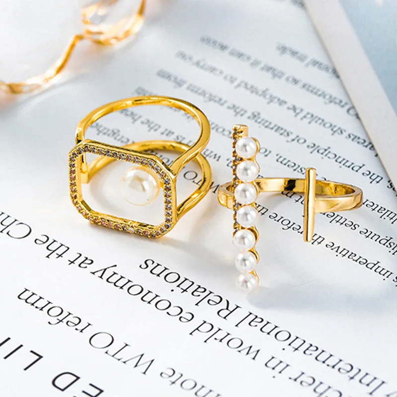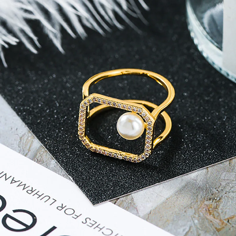 Женское Открытое кольцо с жемчугом, новые корейские модные геометрические кольца из латуни с цирконием и искусственным жемчугом, 2022
