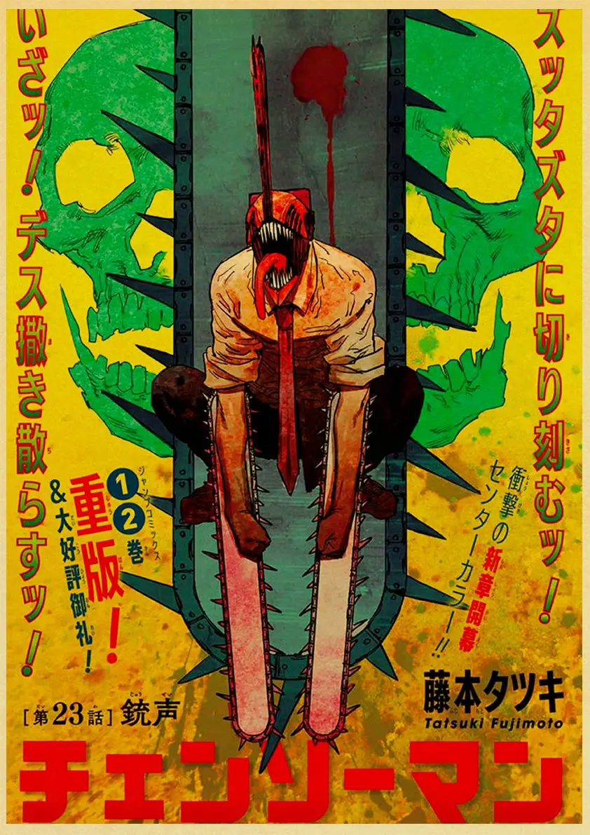 Самоклеящаяся картина наклейки на стену аниме бензопила человек плакат художественная живопись Гостиная Бар Кафе декоративная живопись