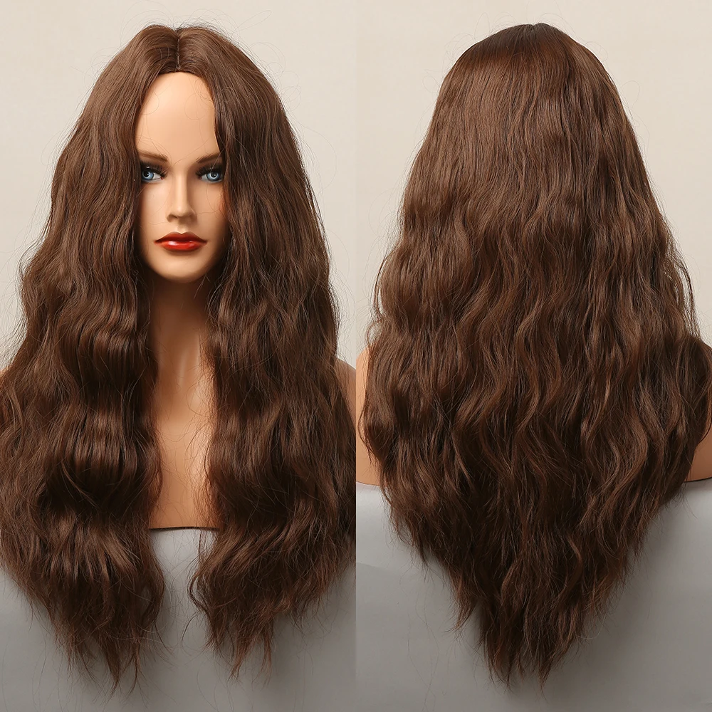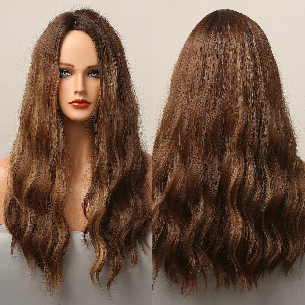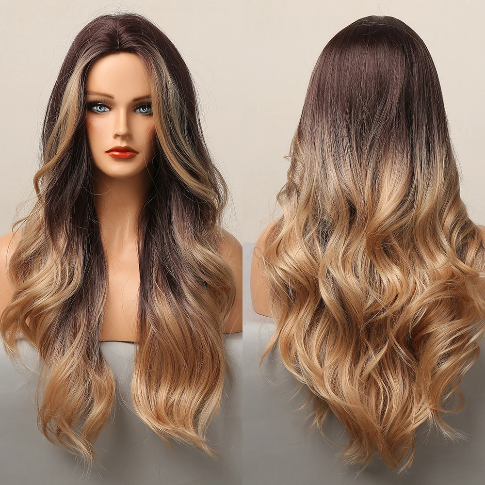 Черно-коричневые синтетические парики омбре с полной челкой, длинные глубокие волнистые парики для женщин, повседневные праздничные термостойкие волосы Faker