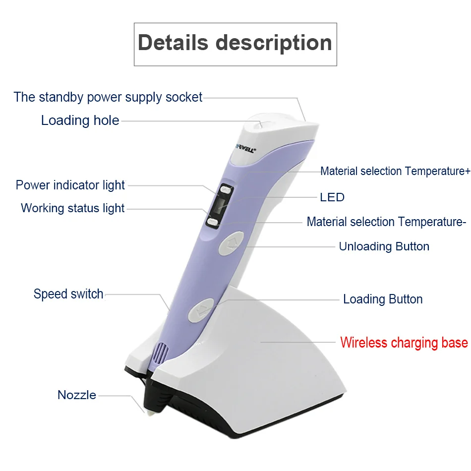Myriwell Беспроводная зарядка низкая температура 3D Ручка PCLPLA 4t...