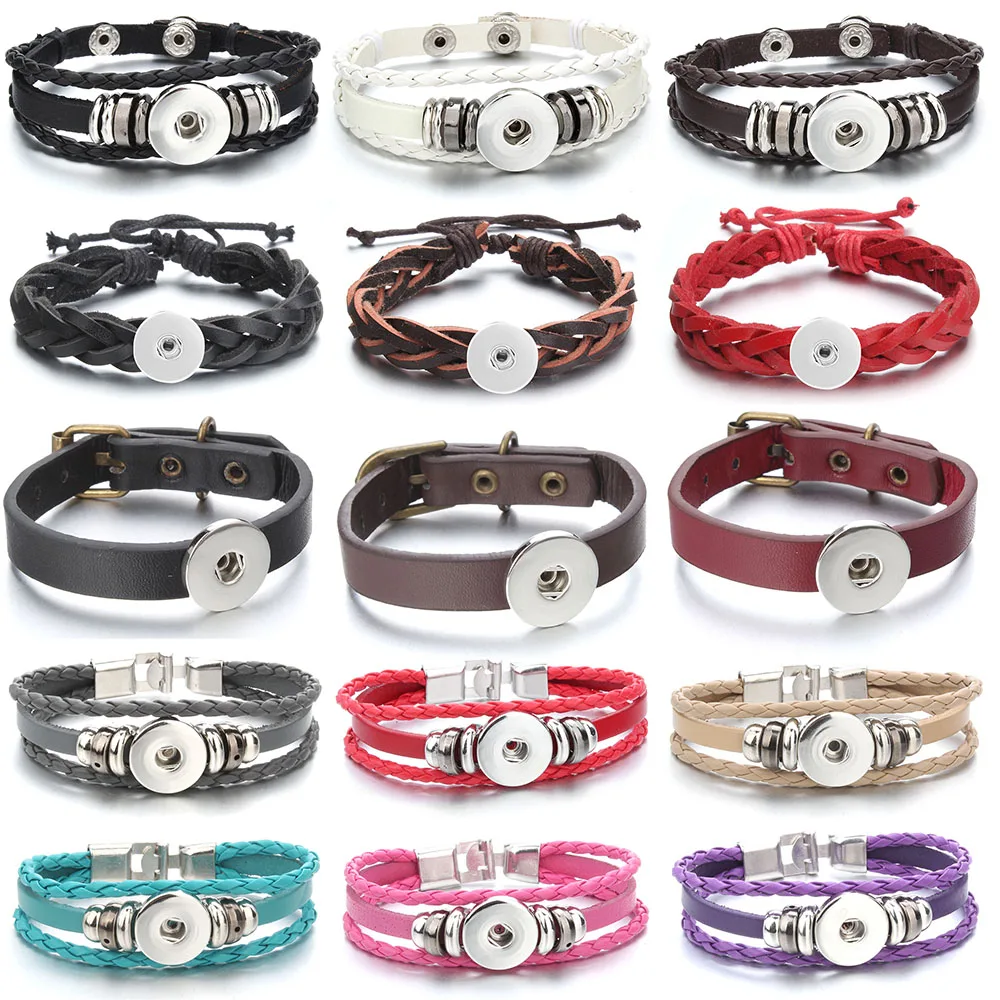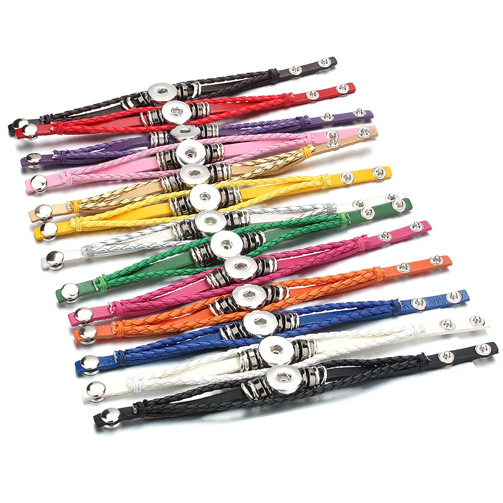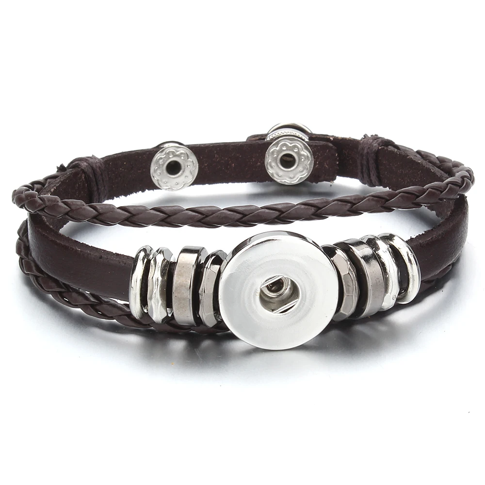 Новые кнопки ювелирные изделия из плетеной кожи, ручной работы браслет с украшением в виде кнопки Fit 18 мм кнопки DIY имбирь браслеты с подвесками
