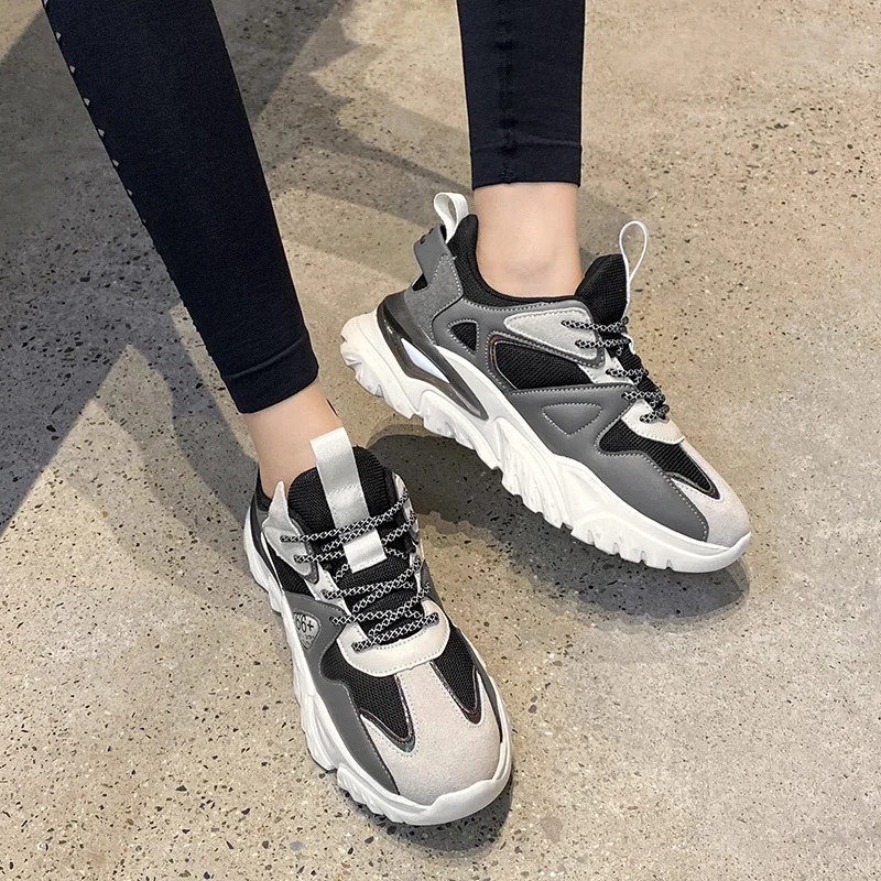 Кроссовки женские на массивной вулканизированной подошве, повседневная обувь из дышащего материала, модная обувь в Корейском стиле для пар, на платформе, на лето