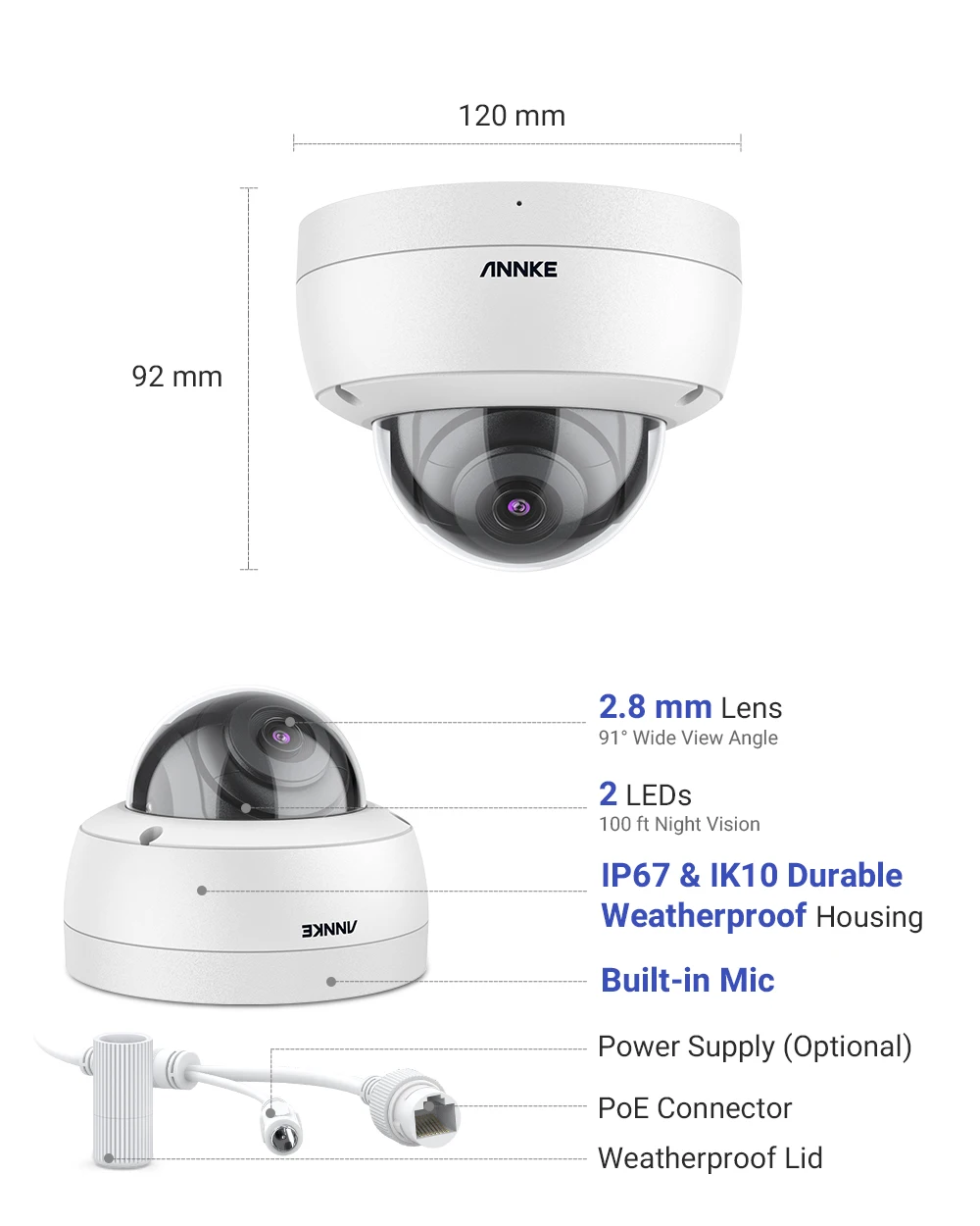 ANNKE C500 купольная 5 Мп уличная IK10 Антивандальная PoE камера безопасности с аудио