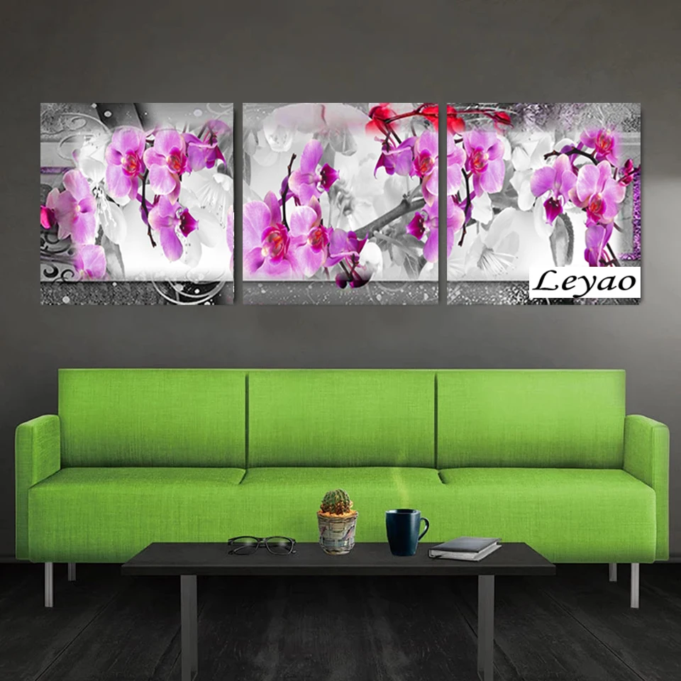 Алмазная живопись "сделай сам", 3 шт., цветок орхидеи, Триптих, моз...