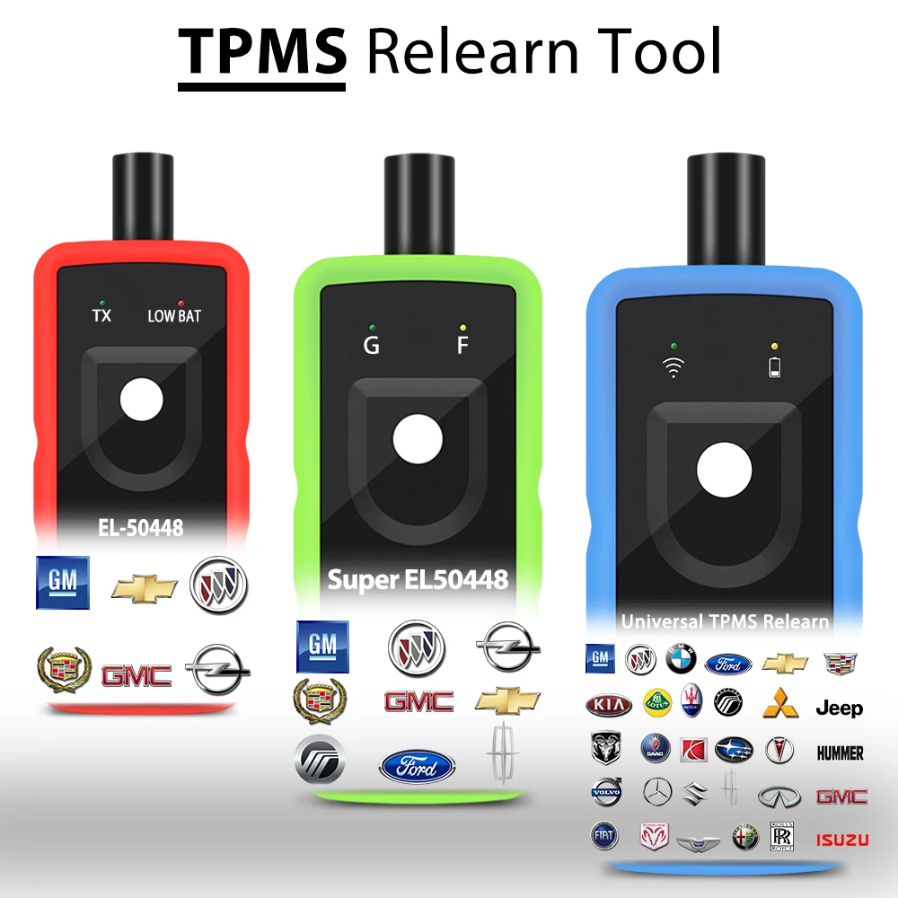 Elel50448 】TPMS Relearn инструмент для GM серии и Opel транспортных средств.【Super EL50448 】 TPMS Relearn инструменты для серии GM и автомобилей Ford.【 U508 】 TPMS Relearn инструмент для пар транспортных средств, подробная поддержка списка автомобилей, пожалуйста, обратитесь к следующим описаниям.