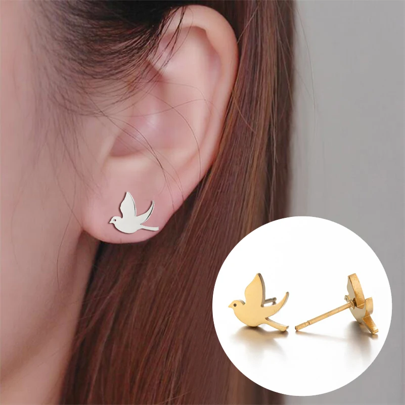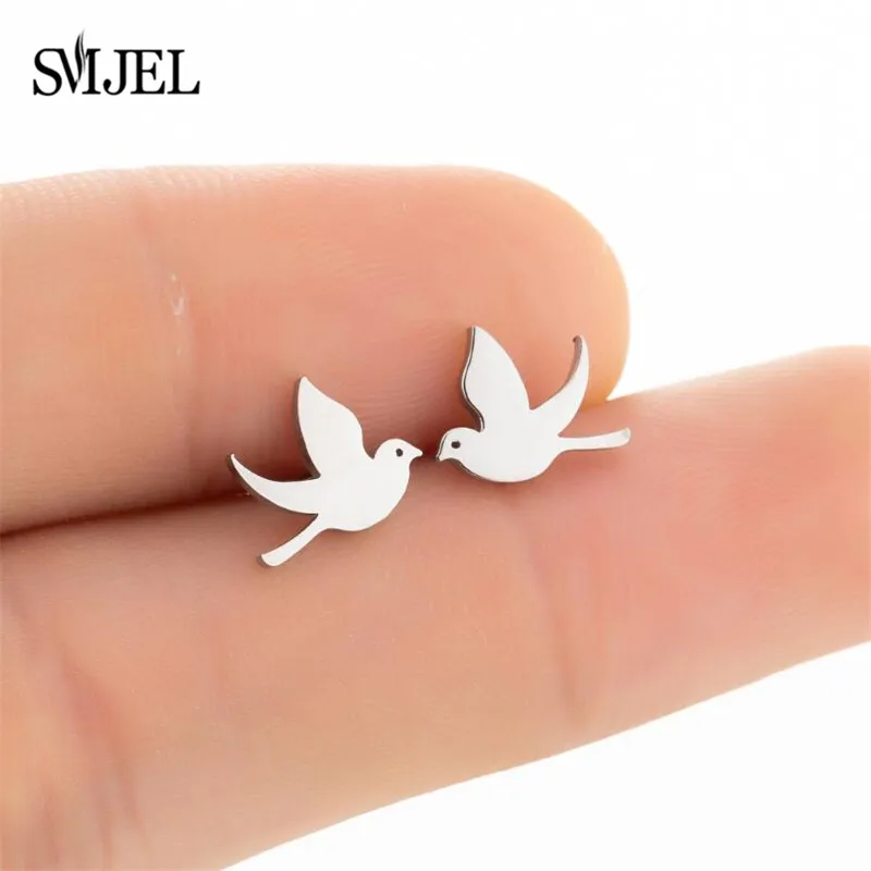 Крошечная нержавеющая сталь серьги в виде птиц для женщин, модное ж...