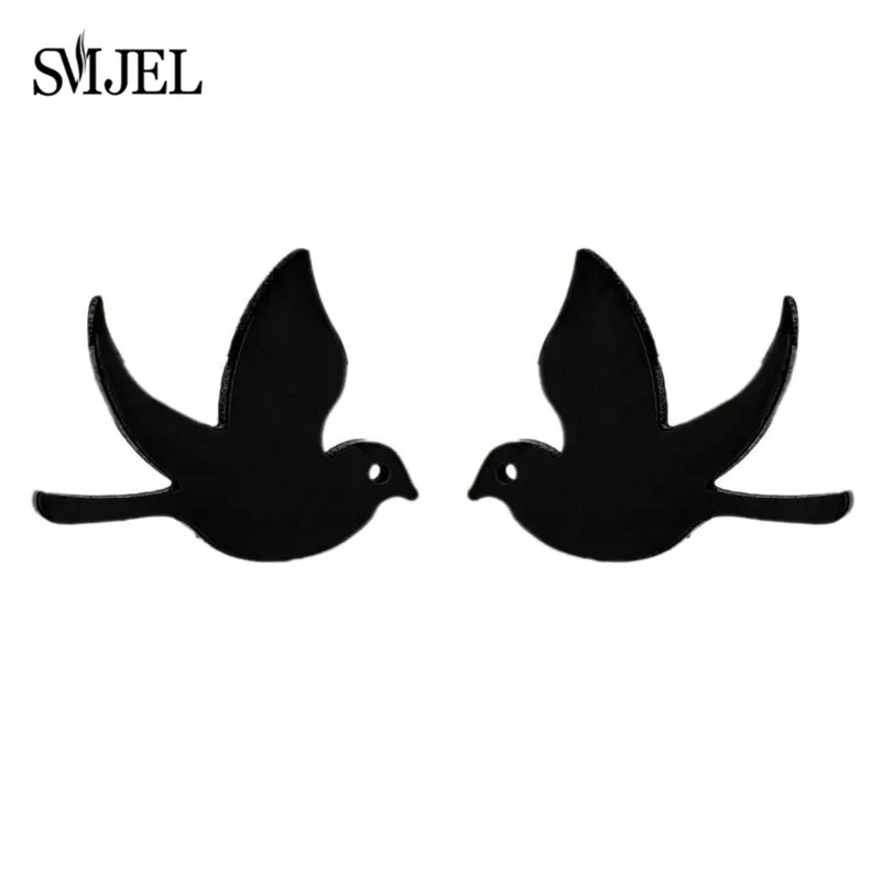 Несколько черный ласточка серьги-гвоздики в виде птицы для женщин Малый нержавеющей стали фламинго и рисунком в виде птичек-оригами журавль Dove серьги Птица ребенка шпильки