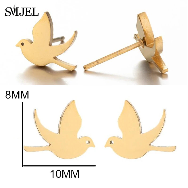 Серьги Птица из нержавеющей стали для женщин, маленькие украшения в...