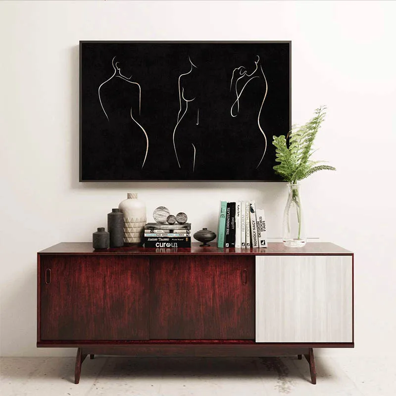 Женская обнаженная линия, художественный черный фон, постер, абстрактная Женская настенная Картина на холсте, печать на ванной, Настенная картина для домашнего декора