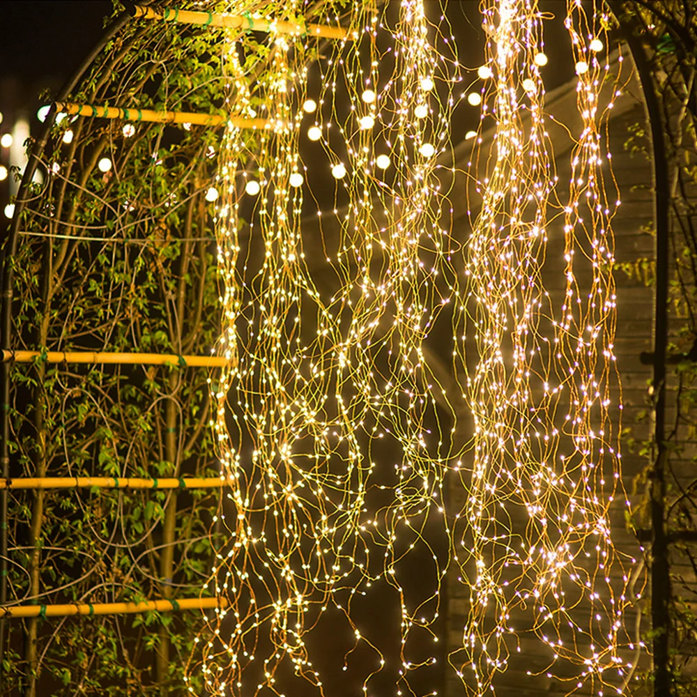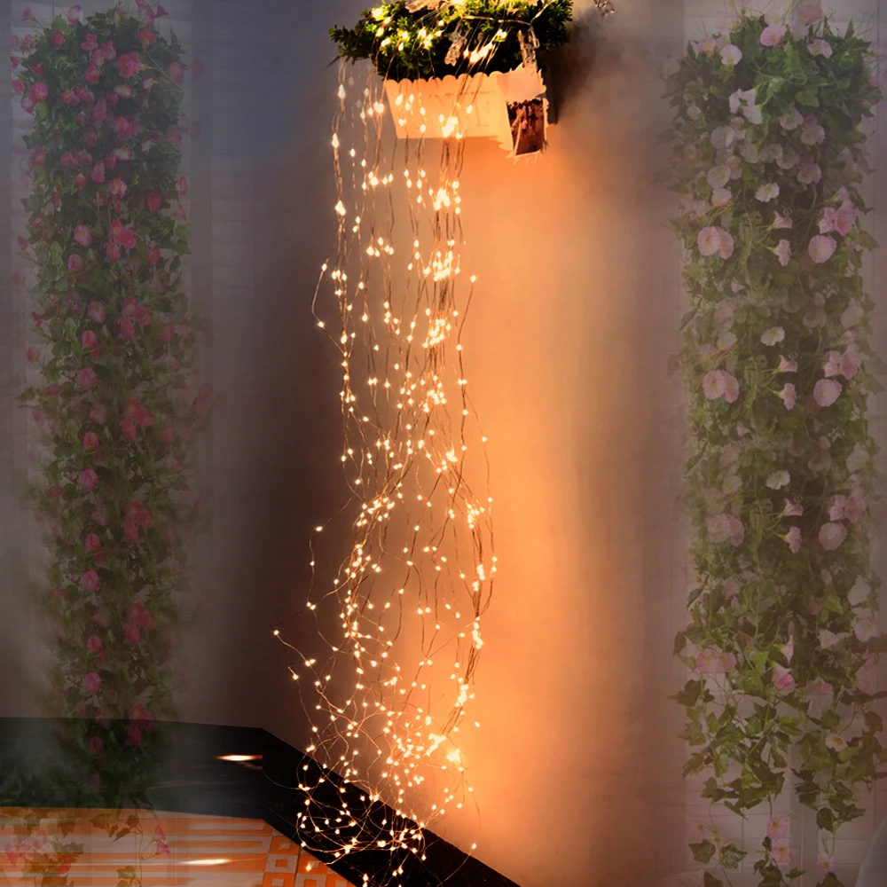 2 м 200 светодиодов, ветка дерева, огни водопада, 10 нитей, медная серебряная проволока, сказочные гирлянды для дома, вечерние, праздничные, рождественские украшения