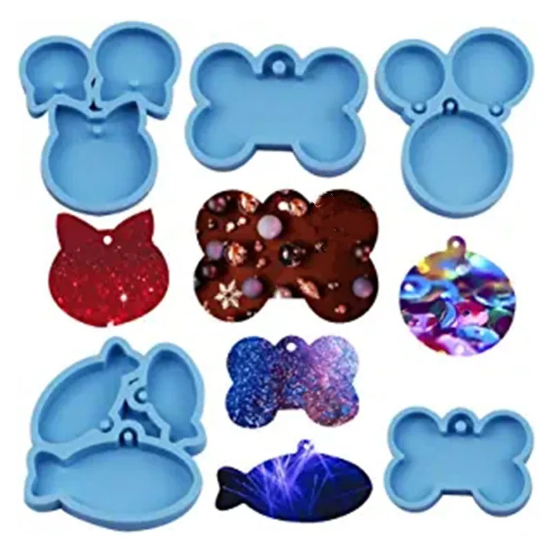 5 шт./компл. DIY Собака бирка эпоксидная смола, форма круг кошки собаки кость брелок Подвеска силиконовая форма ручной работы Рукоделие Ювелирные Изделия Литье инструмент