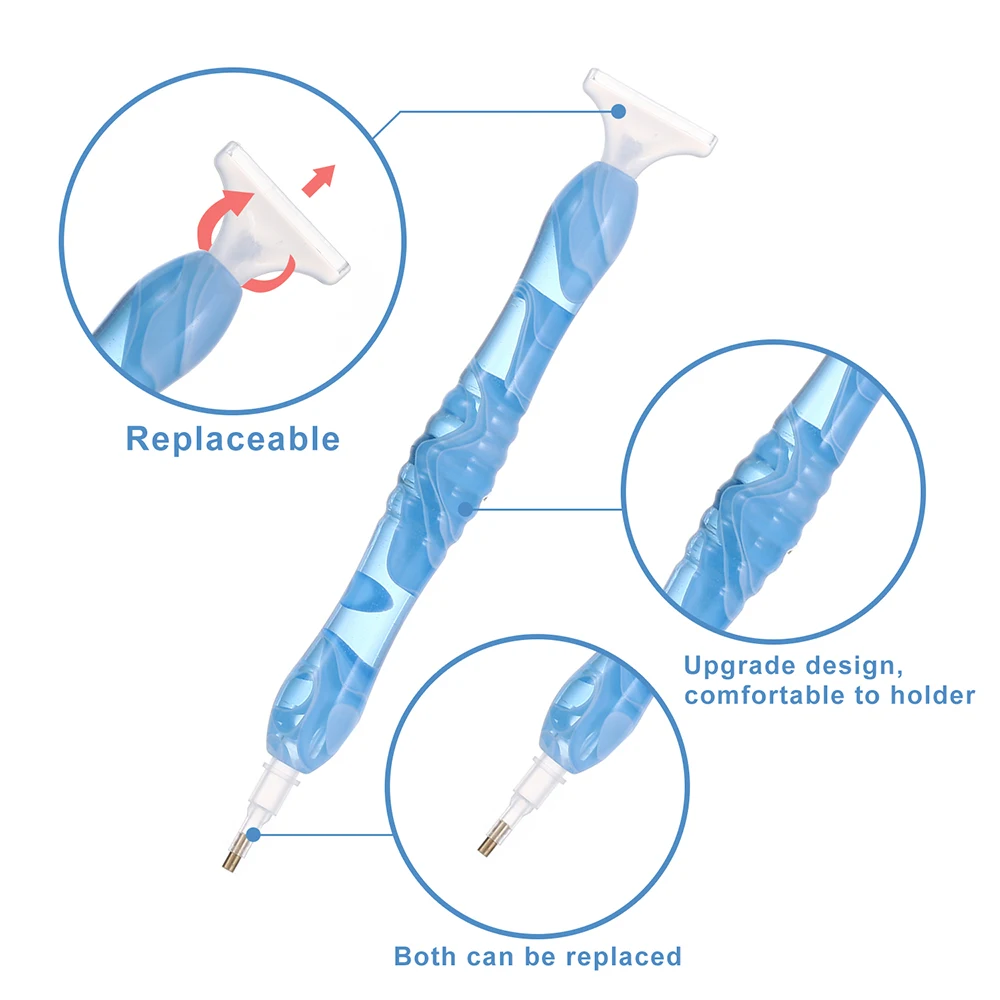 Алмазная ручка сделана из высококачественной смолы, которая используется в эргономичном дизайне, подходит для удержания ручки. Каждая индивидуальная дрель-ручка похожа на уникальное произведение искусства.