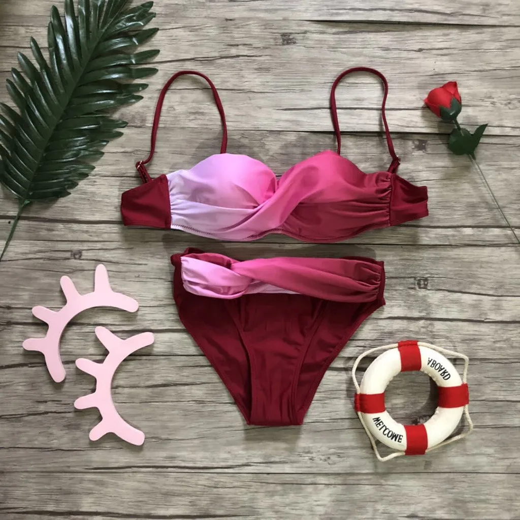 Женский бикини с чашками пуш-ап, пикантный комплект бикини из двух предметов, купальный костюм, пляжная одежда для купания, градиентный купальный костюм