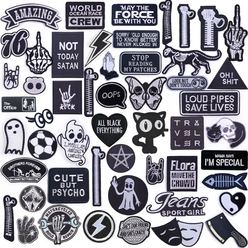 Аппликация с вышивкой сделай сам в стиле панк-музыки, для глажки одежды, шитья, декоративная лента, пицца, рок, тканевые нашивки, аппликации на одежду