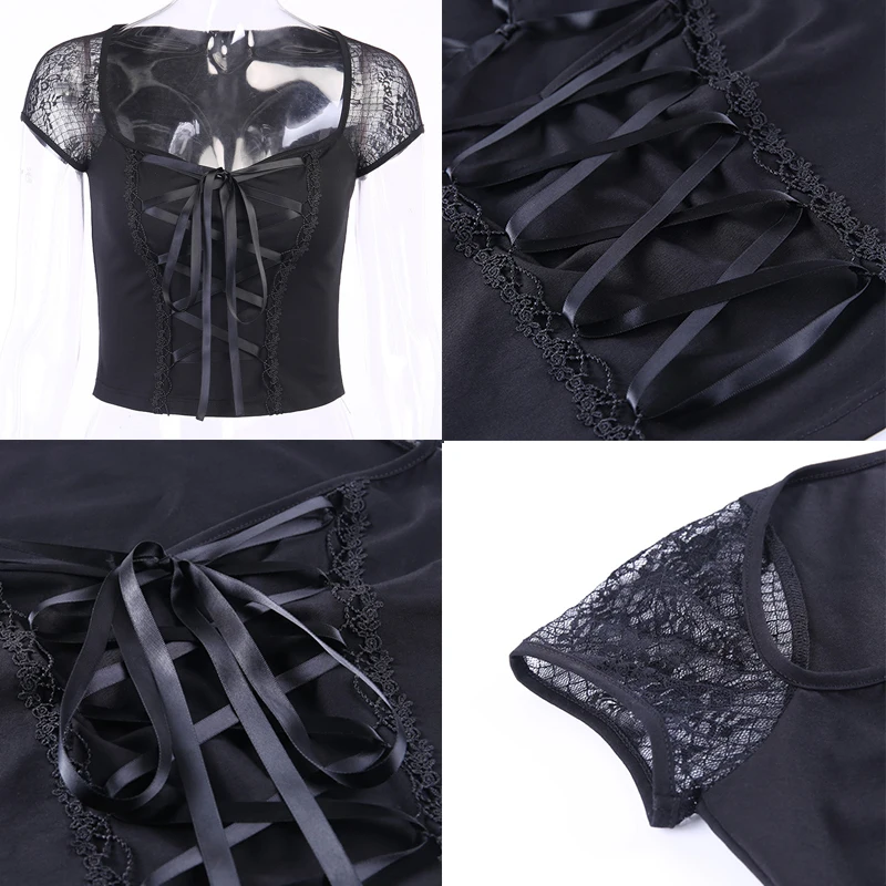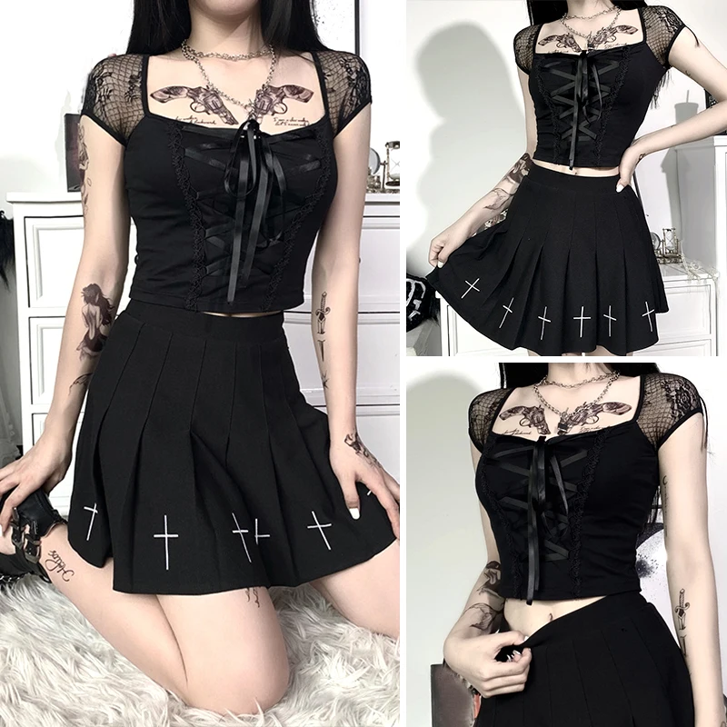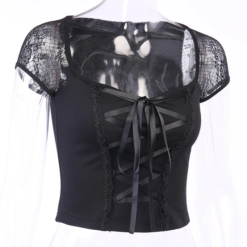 Женский топ с коротким рукавом и квадратным вырезом, в готическом стиле
