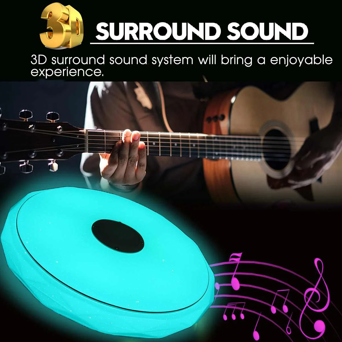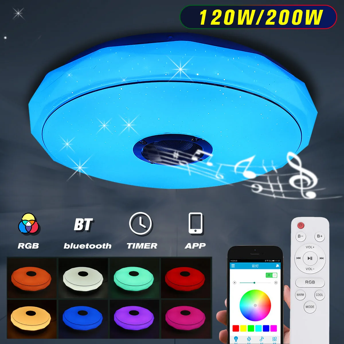 RGB светодиодный музыкальный потолочный светильник 120200 Вт, лампа с bluetooth и динамиком, лампа для дома, вечеринки, спальни с дистанционным управлением, с регулируемой яркостью, умный красочный светильник с приложением