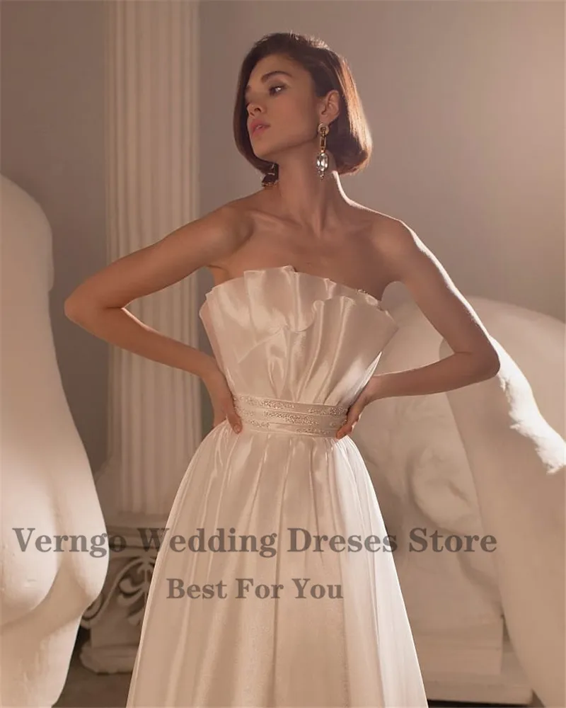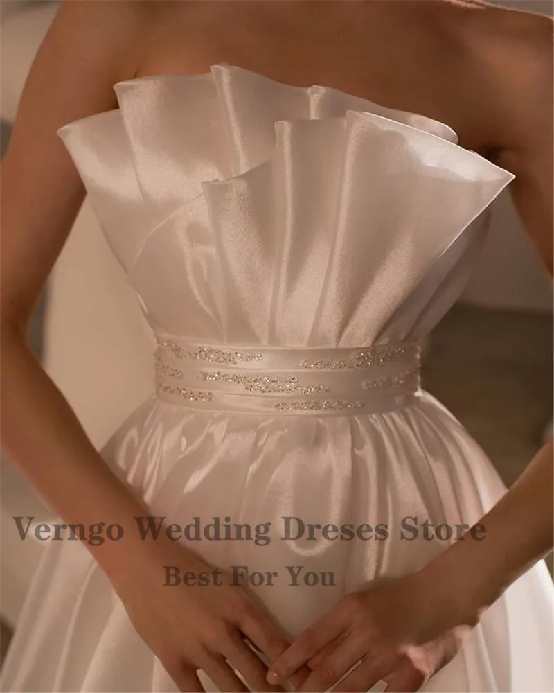 Verngo 2021 Новый Дизайн Шелковое атласное свадебное платье с длинными рукавами-фонариками без бретелек женское платье корейские свадебные платья