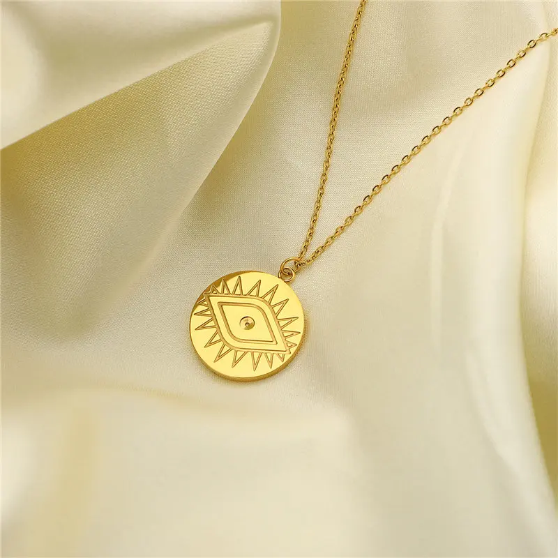 Ожерелье с подвеской HelloLook Devil Eyes для мужчин и женщин, золотая монета из нержавеющей стали воротник с ожерельем с подвесками, ювелирное изделие на шею, ожерелье-чокер18K позолоченное ожерелье из нержавеющей сталиОжерелье с подвеской «сглаза»