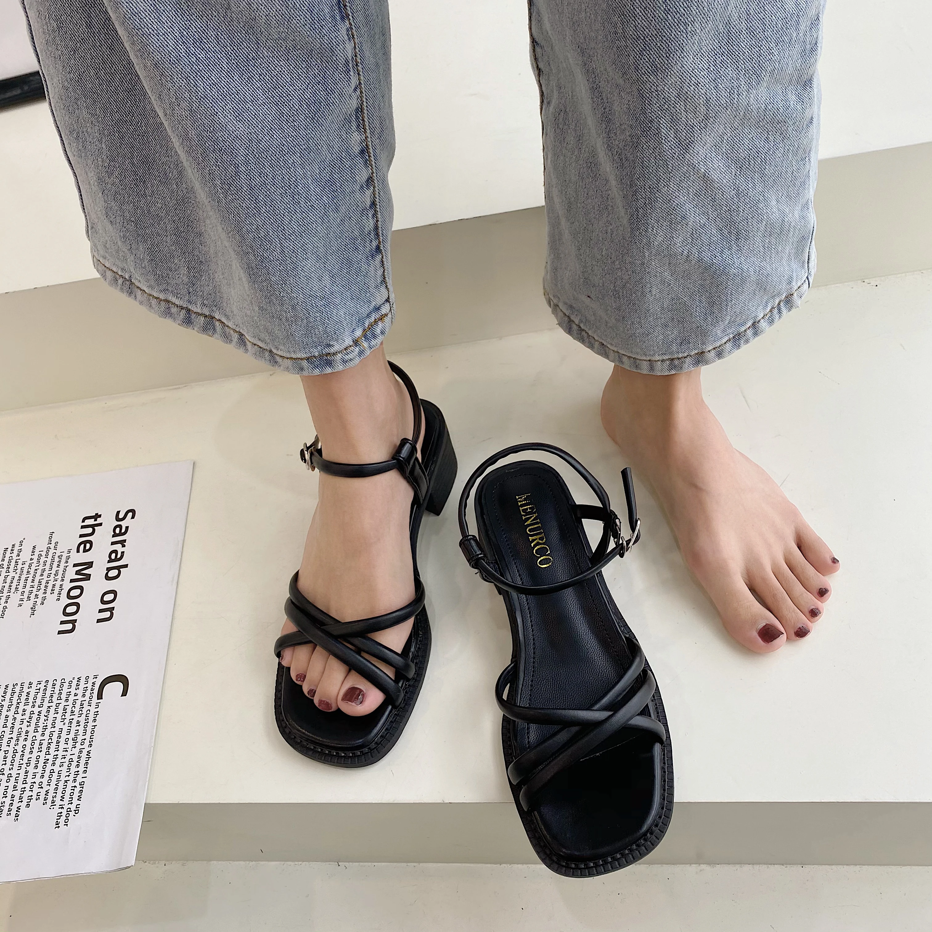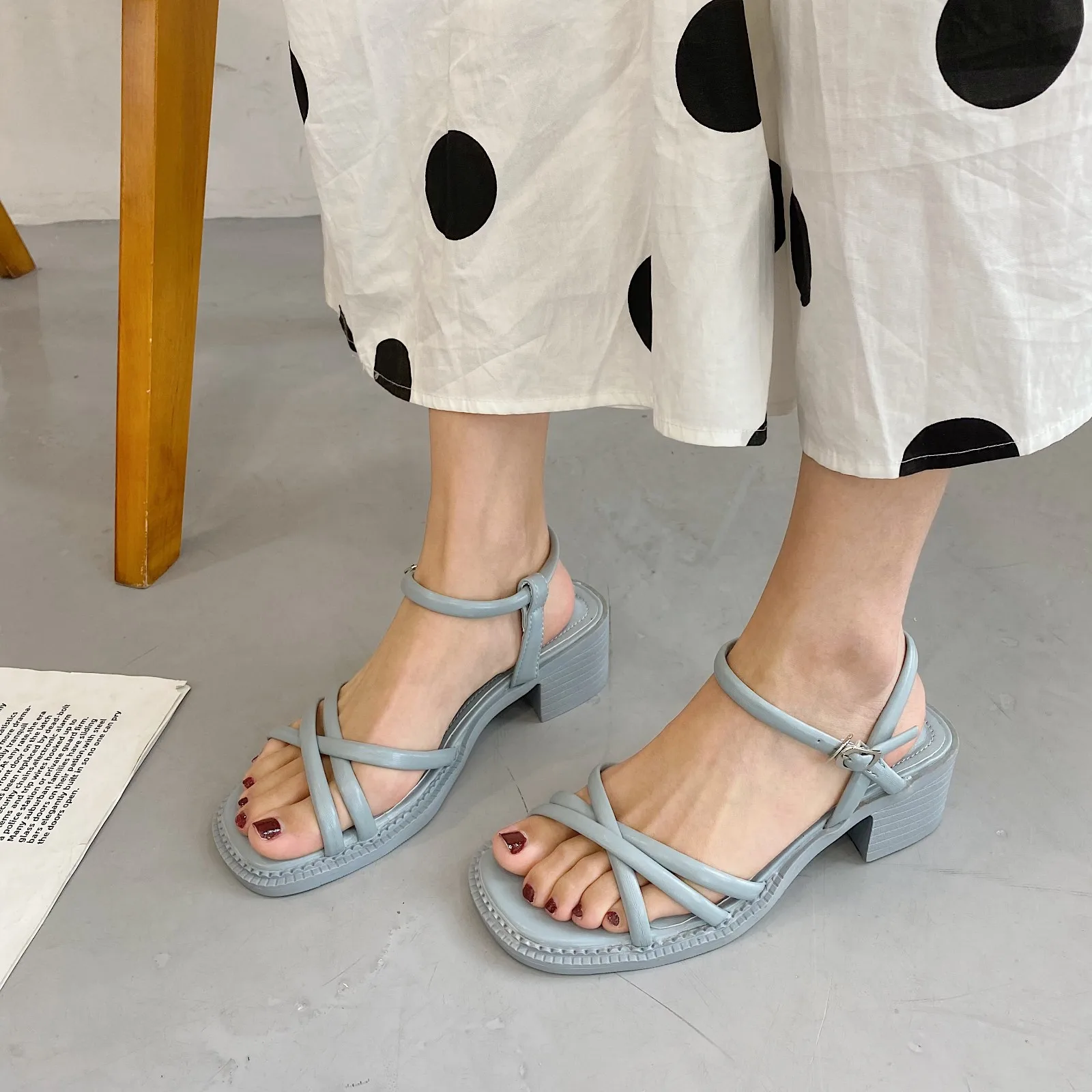 Новинка; Модные женские босоножки; Босоножки на среднем каблуке с пряжкой; Летняя обувь с ремешком сзади; Повседневные сандалии-гладиаторы; zapatos mujer; vc604