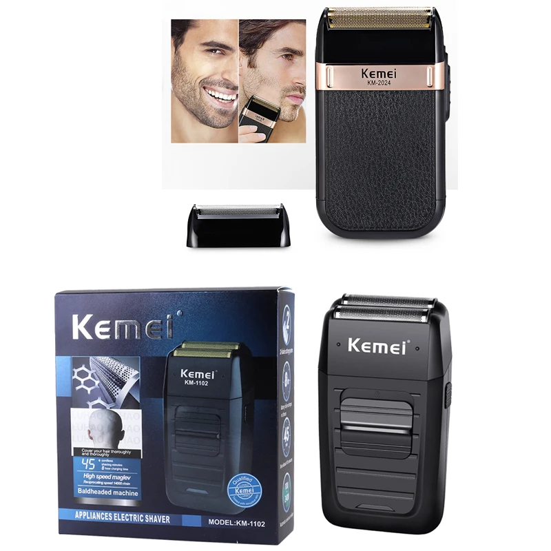 Триммер для бороды и щетины Kemei 1102, Мужская электрическая бритва с двумя головками, беспроводная перезаряжаемая бритва