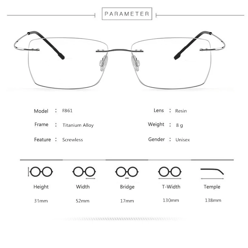 WIHODA без винтов из титанового сплава, рецепт близорукости и дальнозоркости, оптический стеклянный каркас, квадратная Безрамная F861