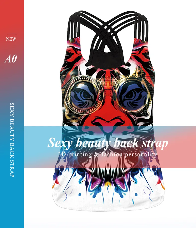 Майка женская спортивная, летняя, быстросохнущая, с 3D-принтом животных
