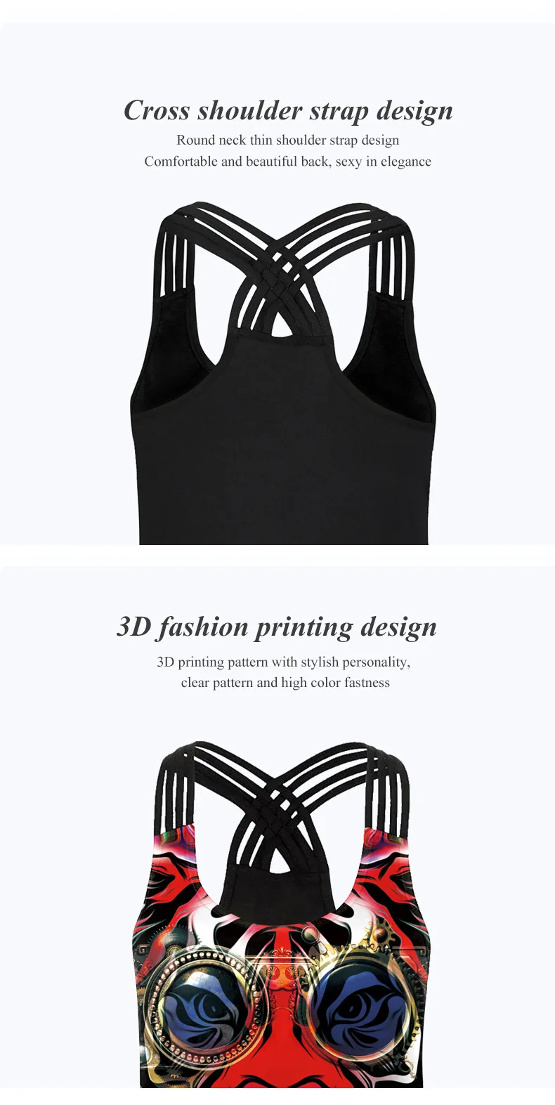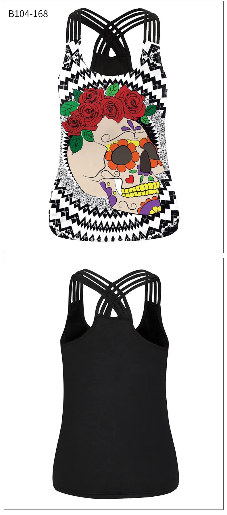 Летние женские спортивные топы череп 3D печати рубашка без рукавов ...