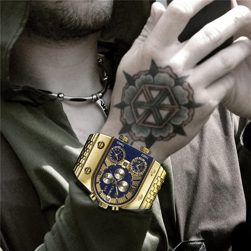 Часы наручные OULM Мужские кварцевые, модные брендовые роскошные золотистые большие Gial из нержавеющей стали, золотистые