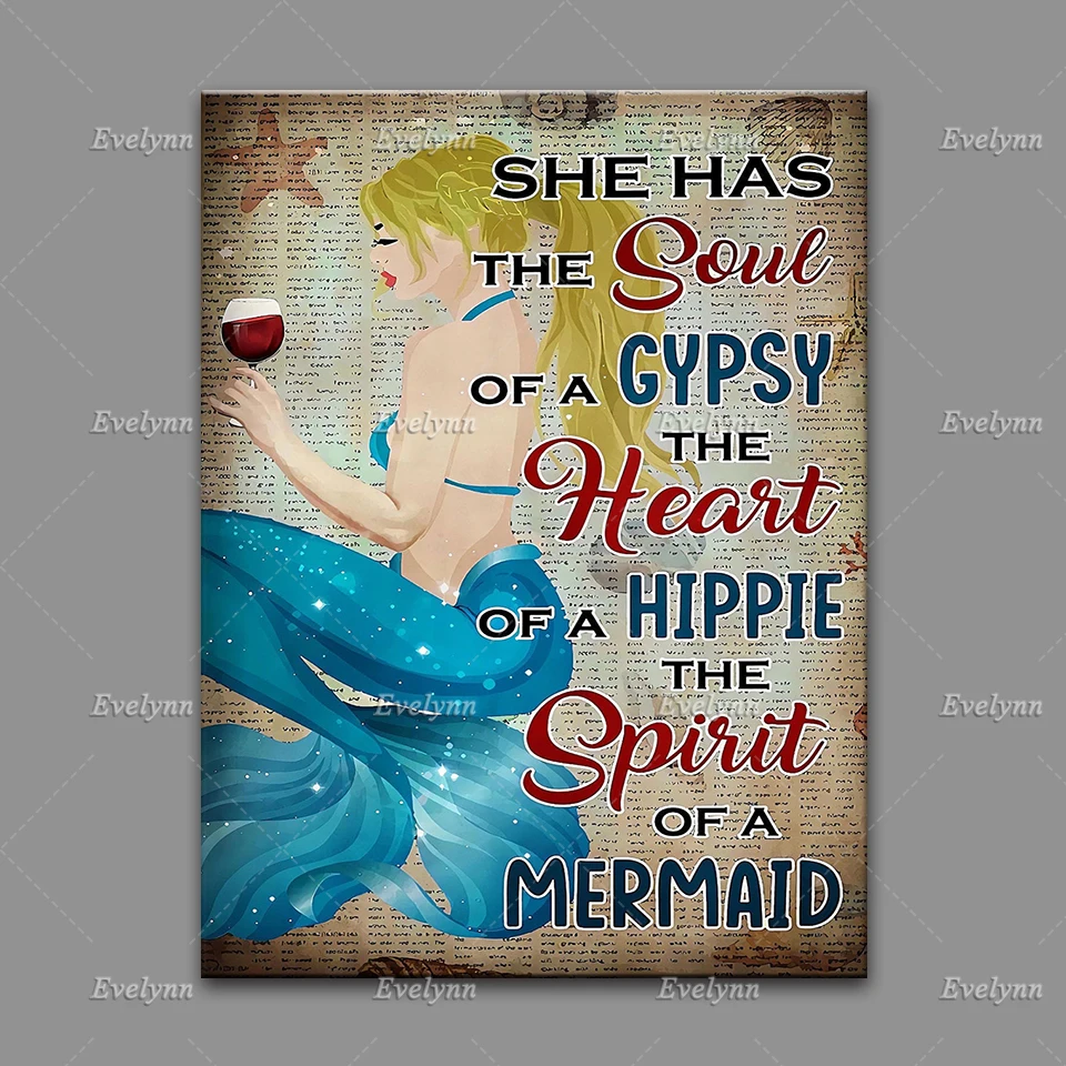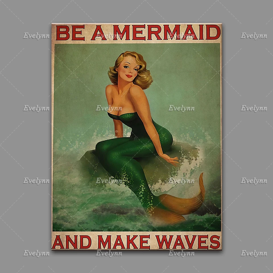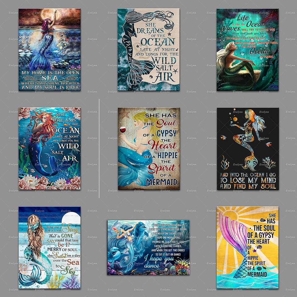 Детский плакат жди Wild Moon, настенное искусство Русалка, Художест...