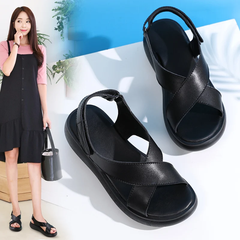 Сандалии женские из натуральной кожи, босоножки на платформе, высокий каблук, танкетка, толстая подошва, Элегантная модная пляжная обувь, лето 2021