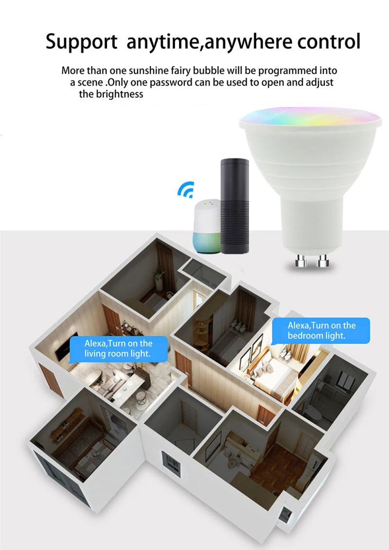 Поддержка Amazon Alexa, google home, Tmall Genie, голосовое управление IFTTT, дистанционное управление мобильным приложением, синхронизация, затемнение и регулировка цвета 16 миллионов цветов. Совместимость с Amazon alexa, google home, Tmall Genie, Ding Dong и app IFFTTT. Функция памяти, голосовое управление и режим сцены. Wifi Интеллектуальный светодиодный светильник с дистанционным управлением лампы использует светодиодный источник света, его потребление энергии составляет 20% от традиционного, и его срок службы более чем в 10 раз больше, чем у энергосберегающих ламп. Умная лампа-лампочка wifi проста и удобна в установке и использовании, безопасна и стабильна и обеспечивает интеллектуальный эффект освещения ламп, который является энергосберегающим и экологически чистым.