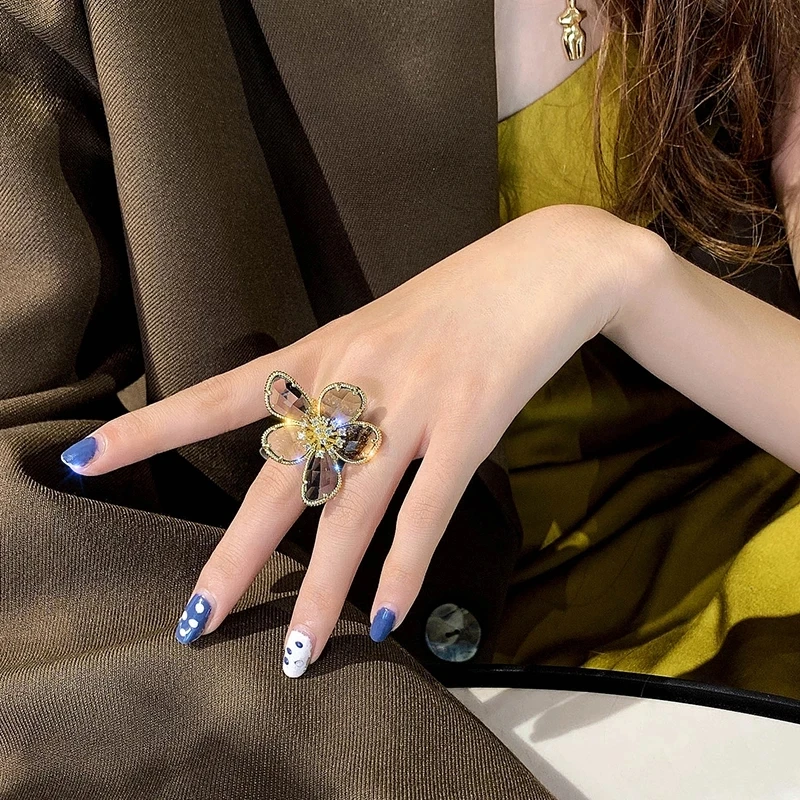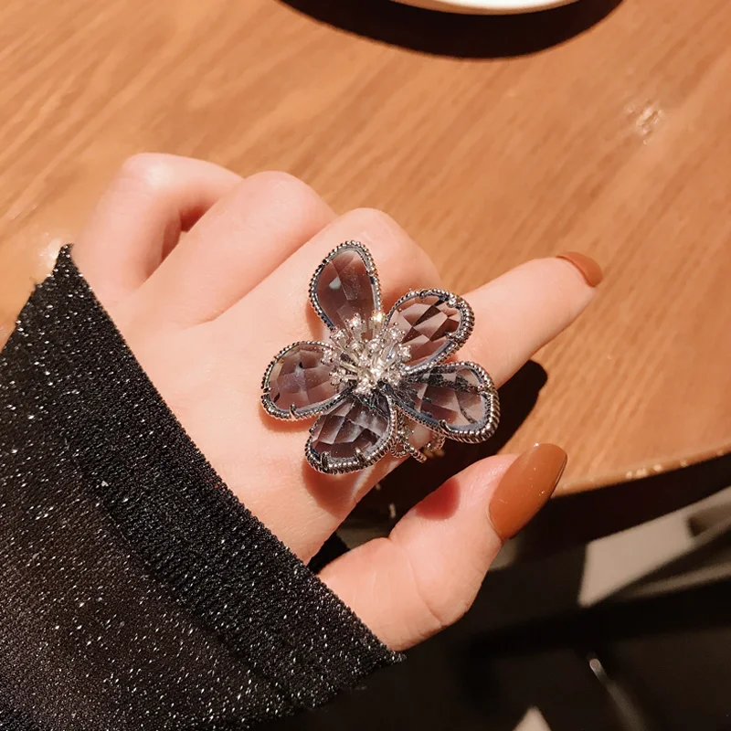 Кольцо-стразы женское, с большим цветком, для коктейвечерние