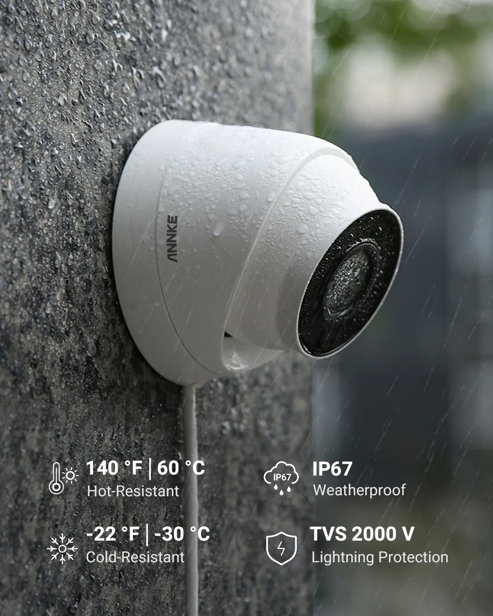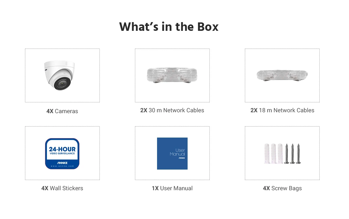Камера ANNKE C500 Ultra HD, 5 Мп, POE, IP67, Погодостойкая, сетевая, белая купольная, 2,8 мм EXIR, ночное видение, с оповещением по электронной почте