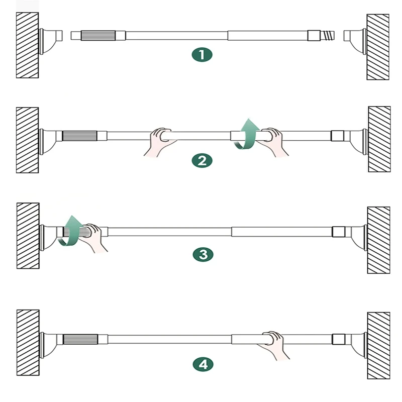 Простота установкиНатяжной стержень прост в растяжении, тяге и повороте, без инструментов, без сверления, без повреждений; Нескользящие резиновые головки на обоих концах стержня увеличивают трение, удобство для вашего использования.