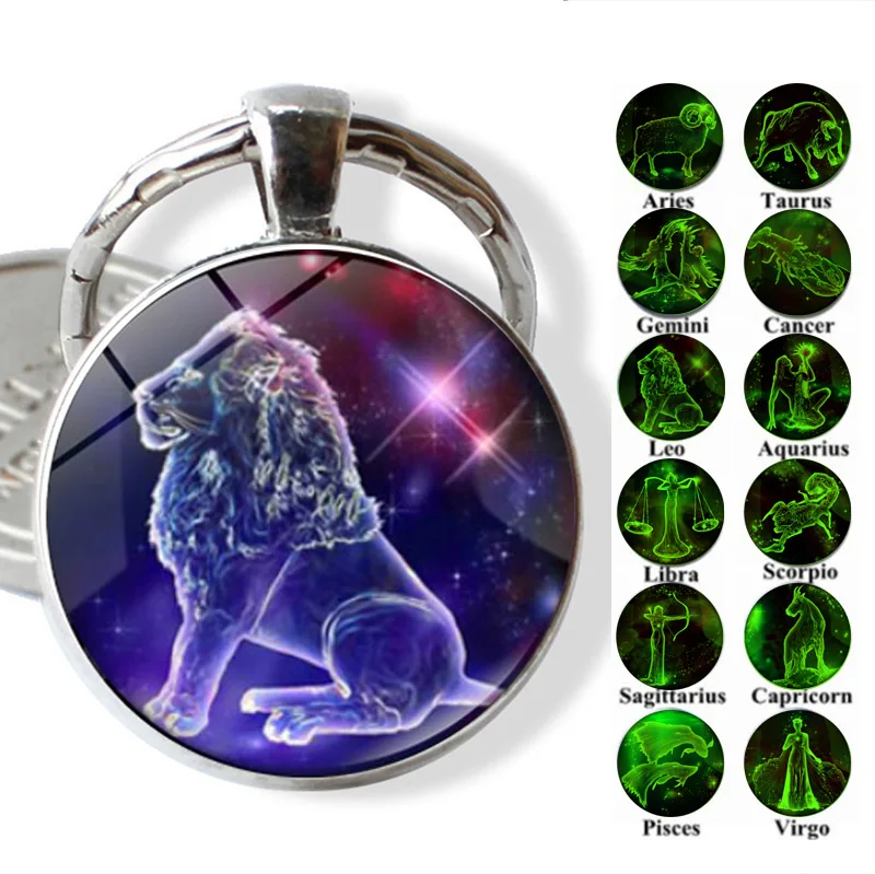 Светящийся брелок с 12 созвездиями, подвески, знаки зодиака, ювелирные изделия, Лев, весы, дева, металлический брелок для ключей, цепочка для мужчин и женщин, подарки на день рождения