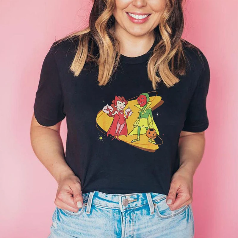 WandaVision Ретро Женская футболка забавная Скарлет ведьма Графический Тройник Wanda & Vision Ретро 80s Винтажная Футболка хипстер Топ дропшиппинг