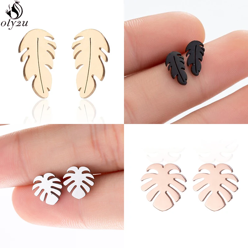 Серьги-гвоздики женские в богемном стиле, модные украшения с листьями, маленькие маргаритки, цветок, кактус, снежинка, подарочные украшения из нержавеющей стали
