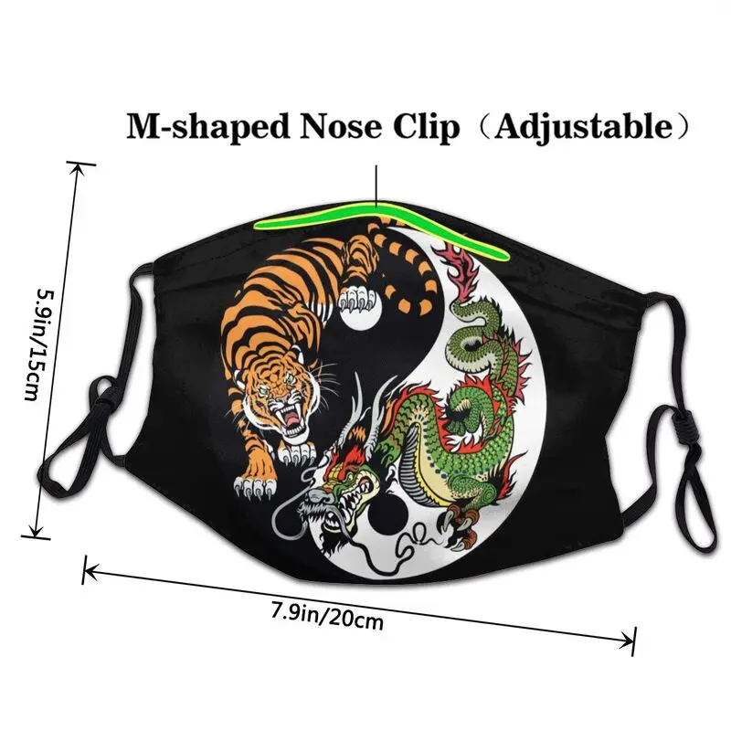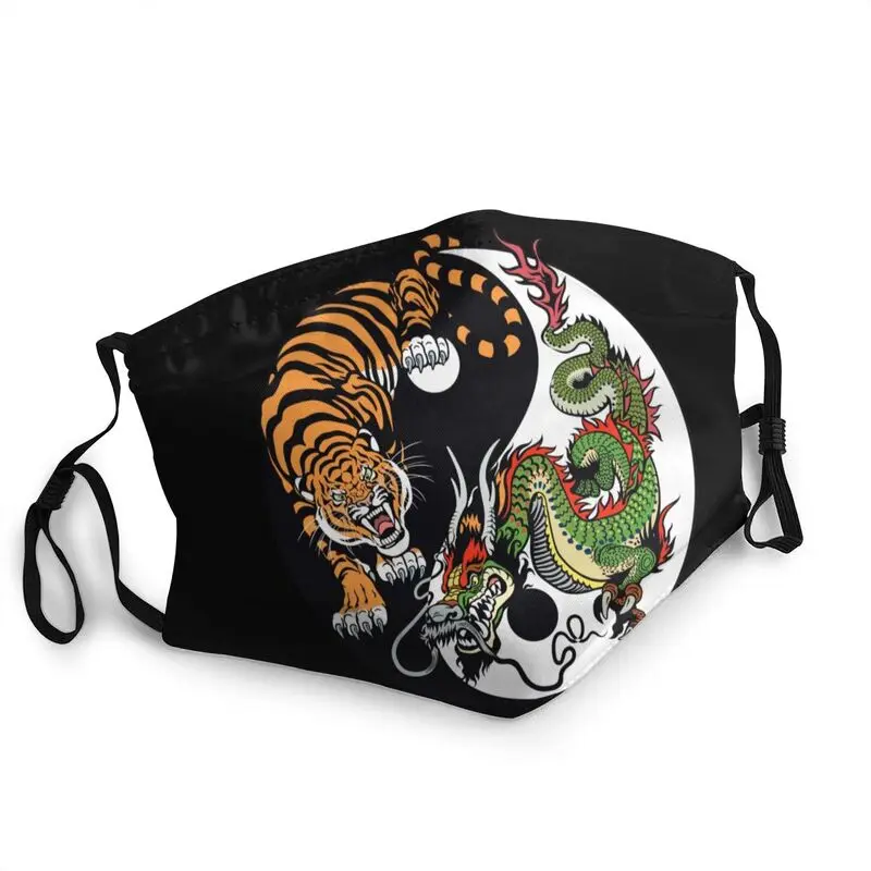 Маска для лица с китайским драконом и тигром тату-графика, дышащая, с символами Инь и Ян